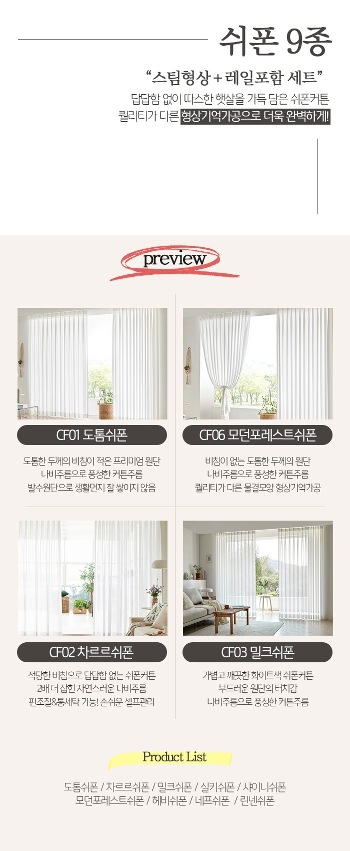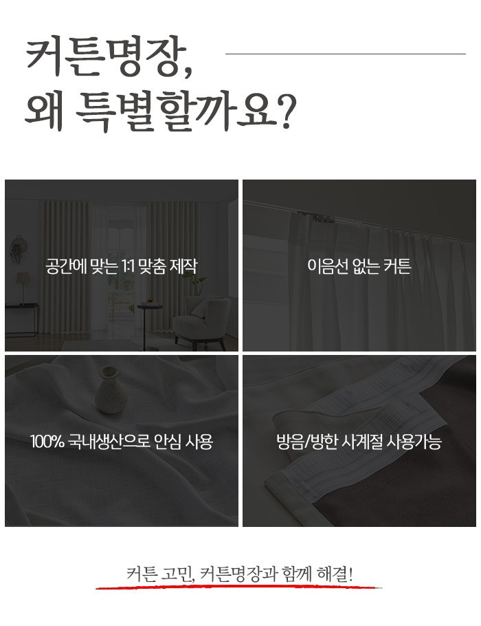 국내 생산이 되는 고급 원단을 개별적으로 제작하므로 유통 단계상 발생될 마진을 줄였으며, 그만큼이나 저렴한 비용에 제공이 이루어지고 있는데요.커튼 중에서도 다양한 종류들이 있기 마련인데요. 린넨커튼이나 암막커튼, 쉬폰커튼 등 다양한 커튼들의 종류들에 관하여 이미 들어보신적도 있을 거에요.요즘엔 이런 것들보다, 형상 기억 커튼이 많은 이들에게 많은 인기가 있다고 말씀을 드릴 수가 있겠는데요.